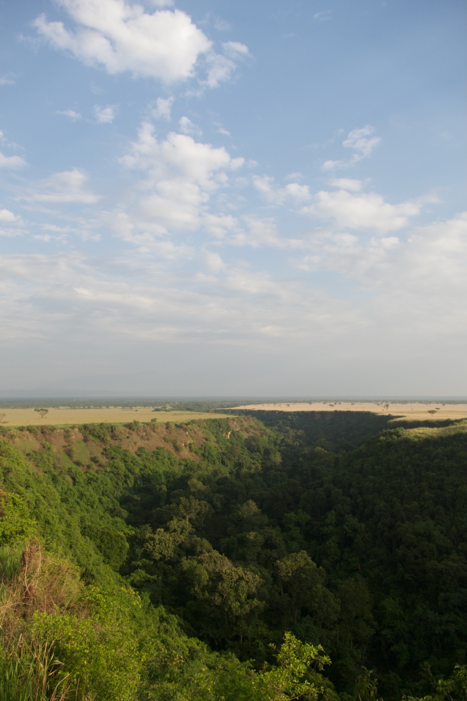 One unique feature of Kyambura is that the forest goes right up to the savannah floor. At certain times of year the fruits int he valley become sparse and the chimpanzees climb the walls of the valley to feed on fruit tress in the savannah in the Kyambura Reserve. This means that you can see chimpanzees on a game drive. This is an experience unique to Kyambura in the entirety of Africa.
